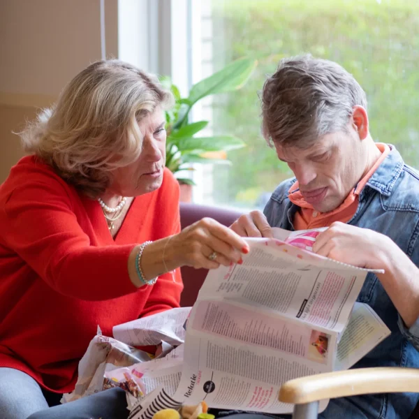 Overdag draaien we 11 dagbestedingsgroepen. We bieden beleving, creatief werk en eenvoudige werkactiviteiten. Ook is er voldoende ruimte voor beweging, met een gymzaal, zwembad en buitenpleinen. Er is een snoezelruimte en een werklokaal voor inpak en montage. We werken met duidelijke afspraken en een vast ritme. De doelen zijn klein en concreet. En er is altijd begeleiding in de buurt. Wanneer nodig sluiten een arts VG, gedragsdeskundige, fysio en ergo aan. Zo blijft de dag overzichtelijk en wordt vooruitgang zichtbaar voor cliënt én team.
